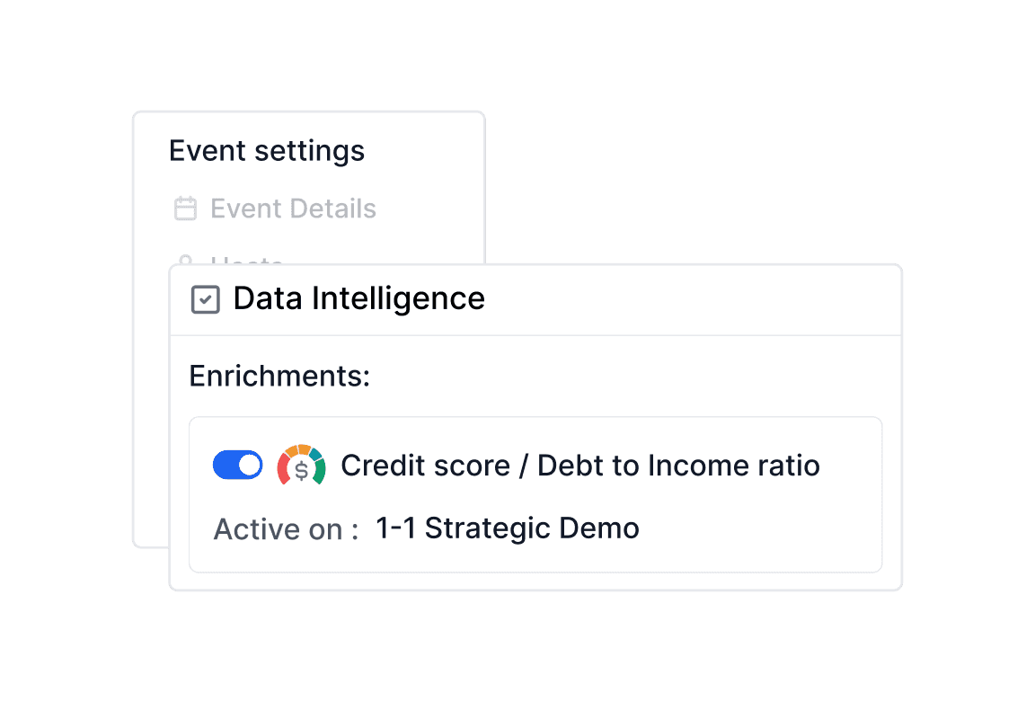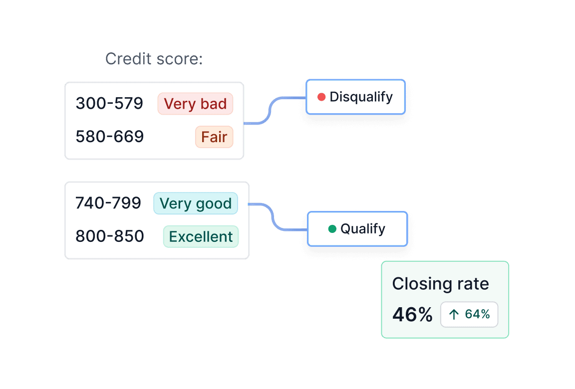 View credit score, debt-to-income ratio, and related financial signals for every lead entering your scheduler.