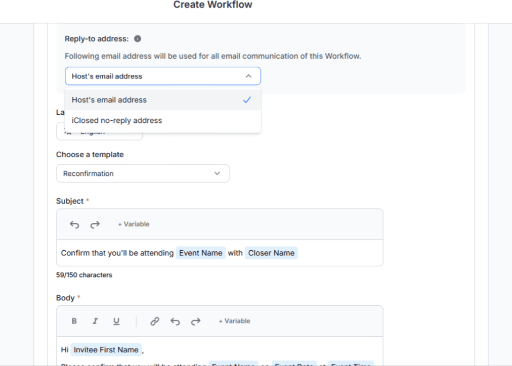 You can now send workflow emails directly from the host’s email address, in addition to no-reply@iclosed.io.