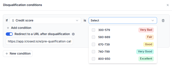 In addition to Credit Score and DTI-based rules, iClosed now lets you disqualify and route leads based on their time zone.