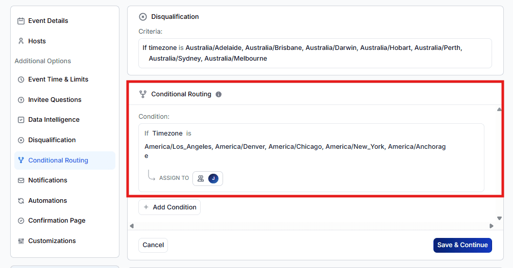 Time zone rules add an extra layer of control when you want to prevent leads from booking calls outside your operating hours or target regions.