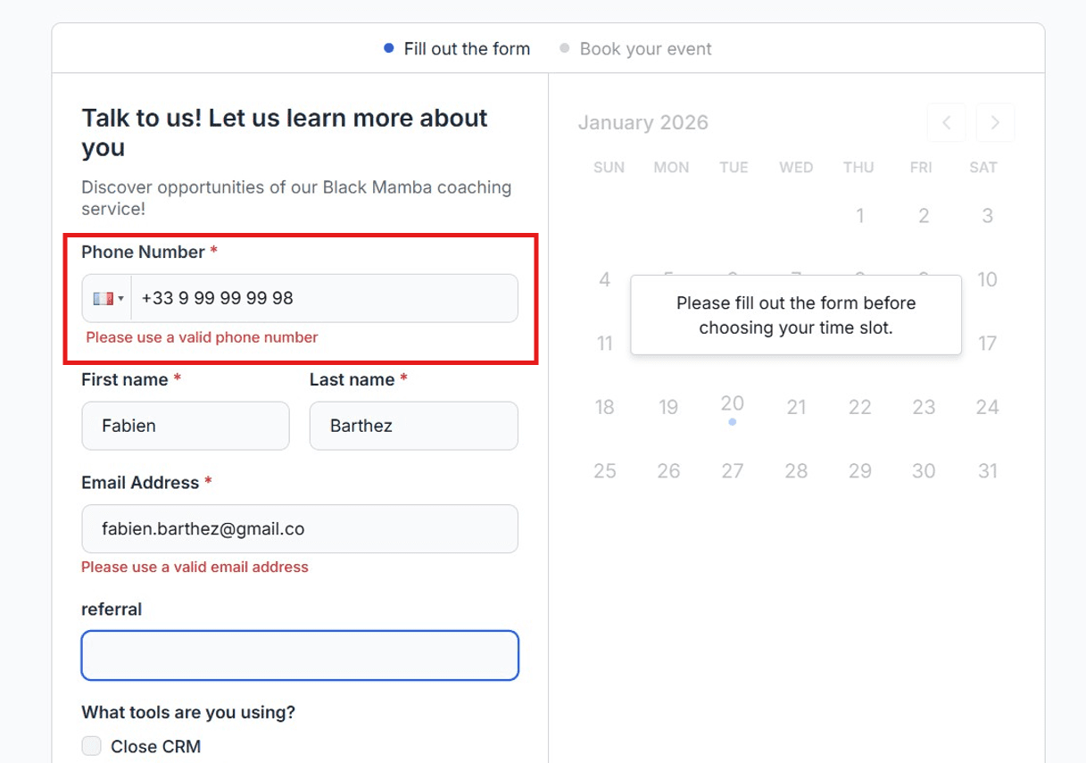 Phone Validation is commonly used to block fake or uncontactable leads, prevent spam submissions, and ensure that only reachable prospects can progress or book calls.